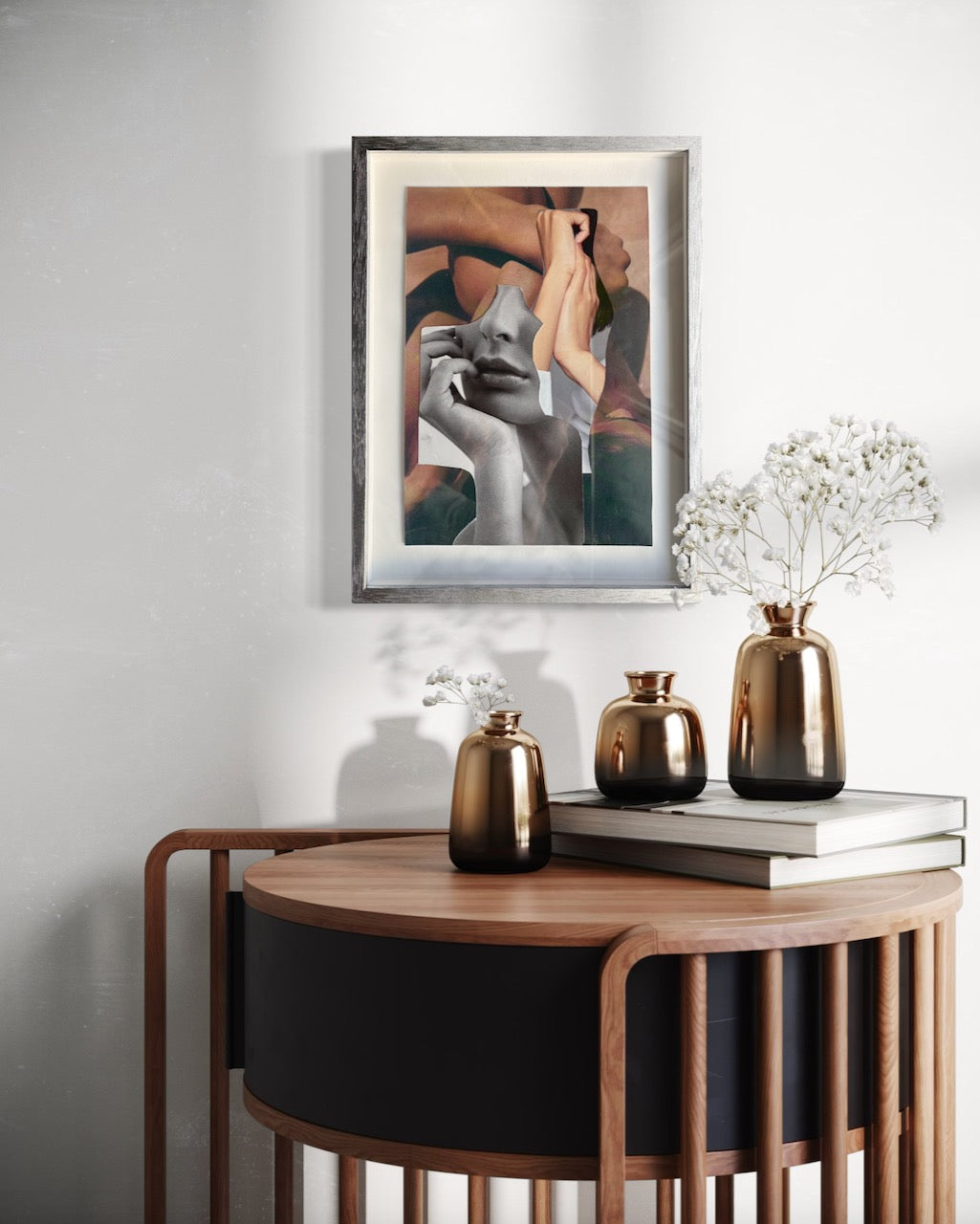 Float mount framing is a sophisticated method of displaying artwork where it appears to be floating within the frame (without any visible support or matting touching its edges).