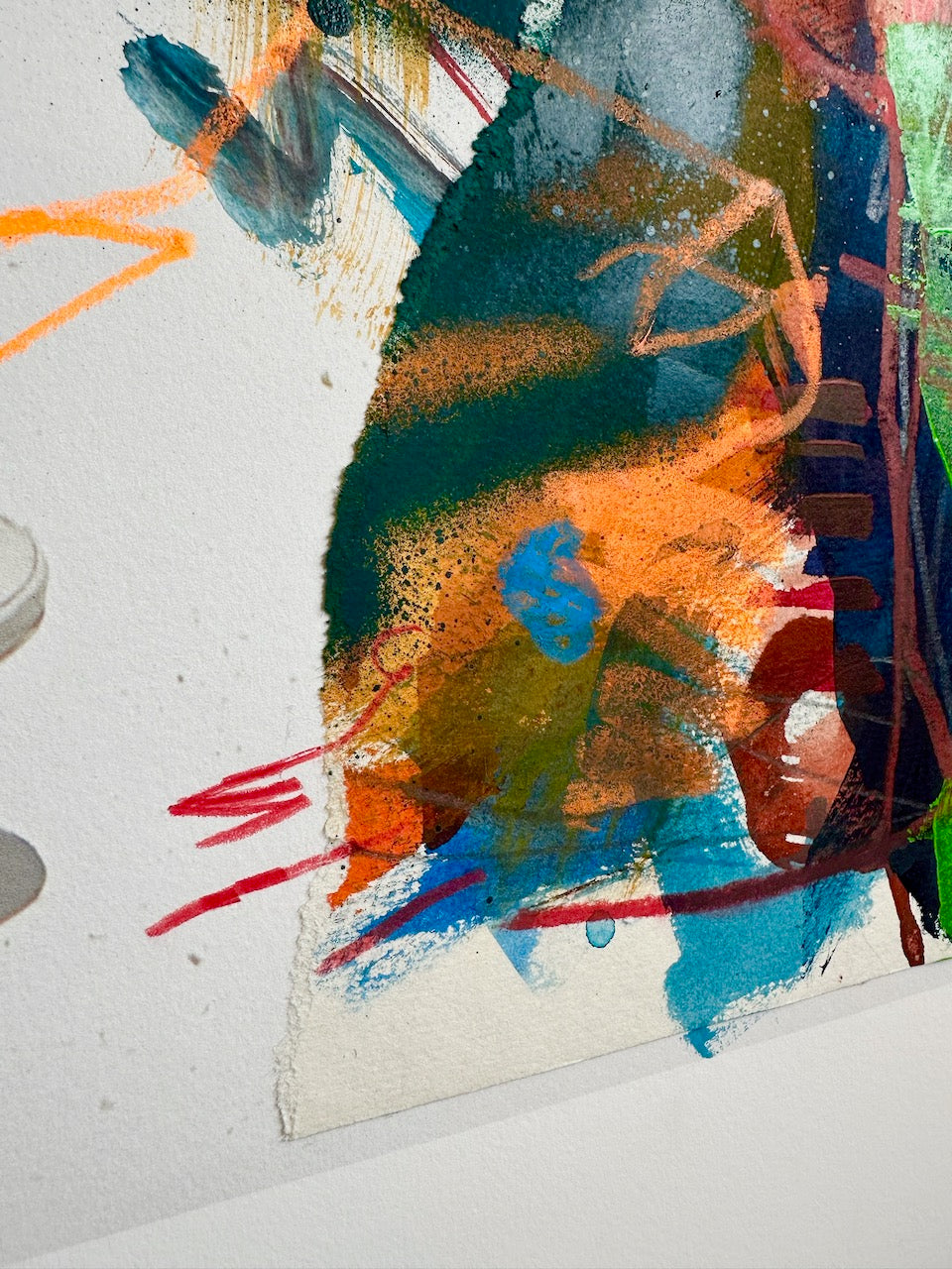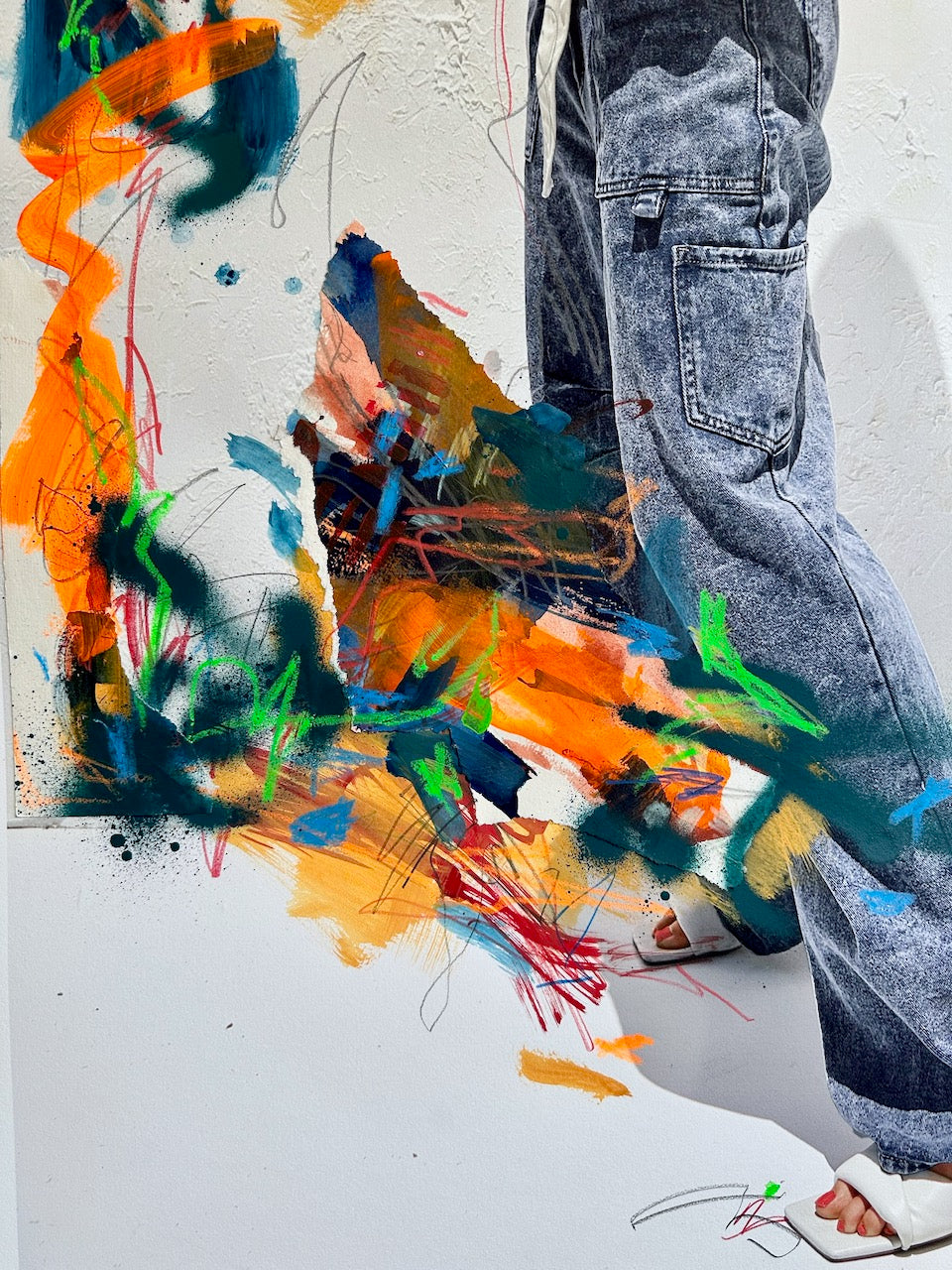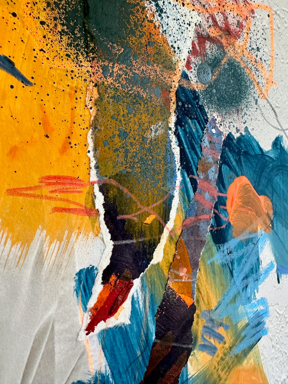 This piece invites reflection on the interplay between control and spontaneity; the painted gestures mirror the emotional highs and chaotic beauty of an adventurous life, drawing the viewer into the euphoric moments and restless creativity of a thrill seeker.