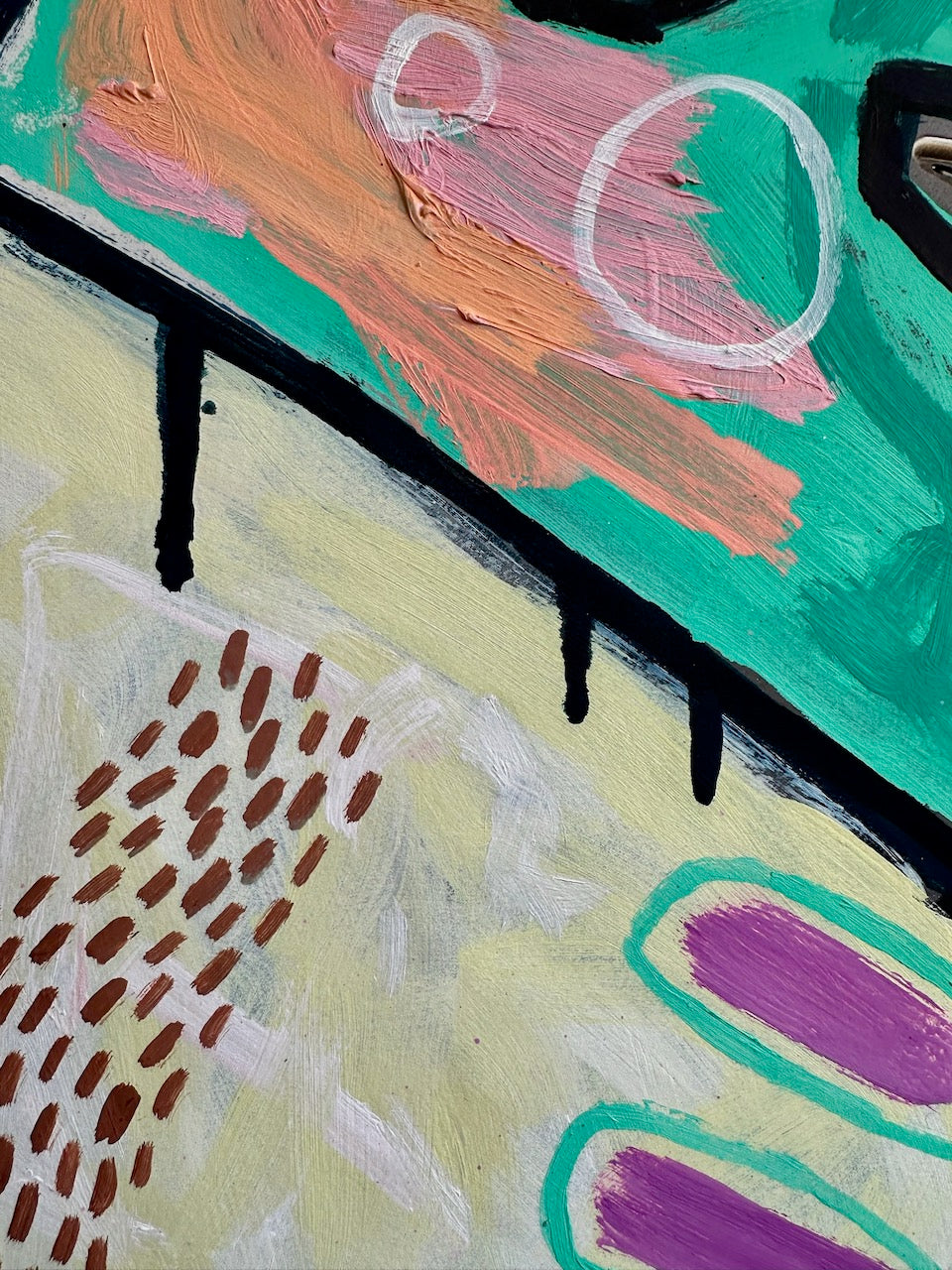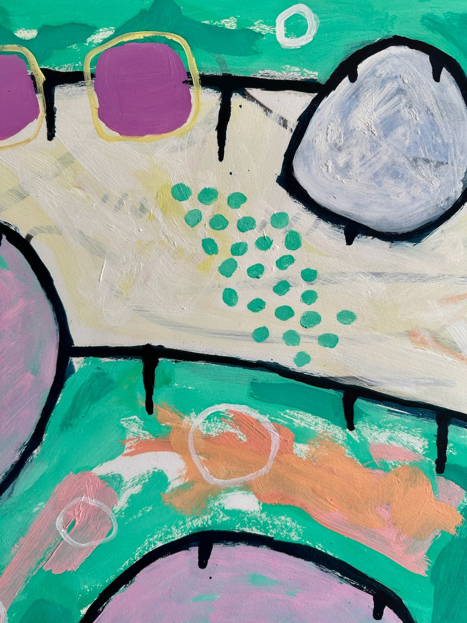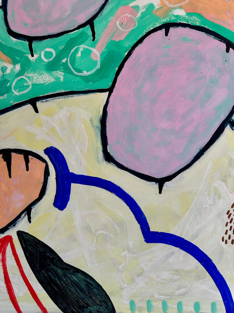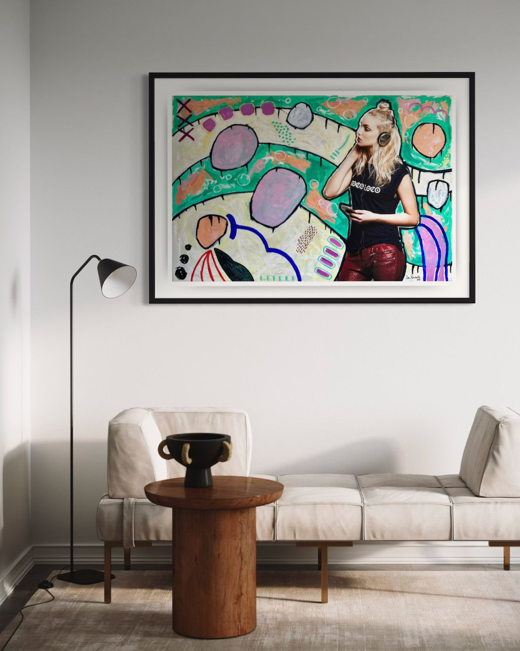 Music has also played an important part in how Ben paints and creates, evoking emotions that inspire his work. Music Sounds Better With You mirrors this emotional intensity; the fluid lines and dynamic shapes create a visual symphony of energy and sentiment.