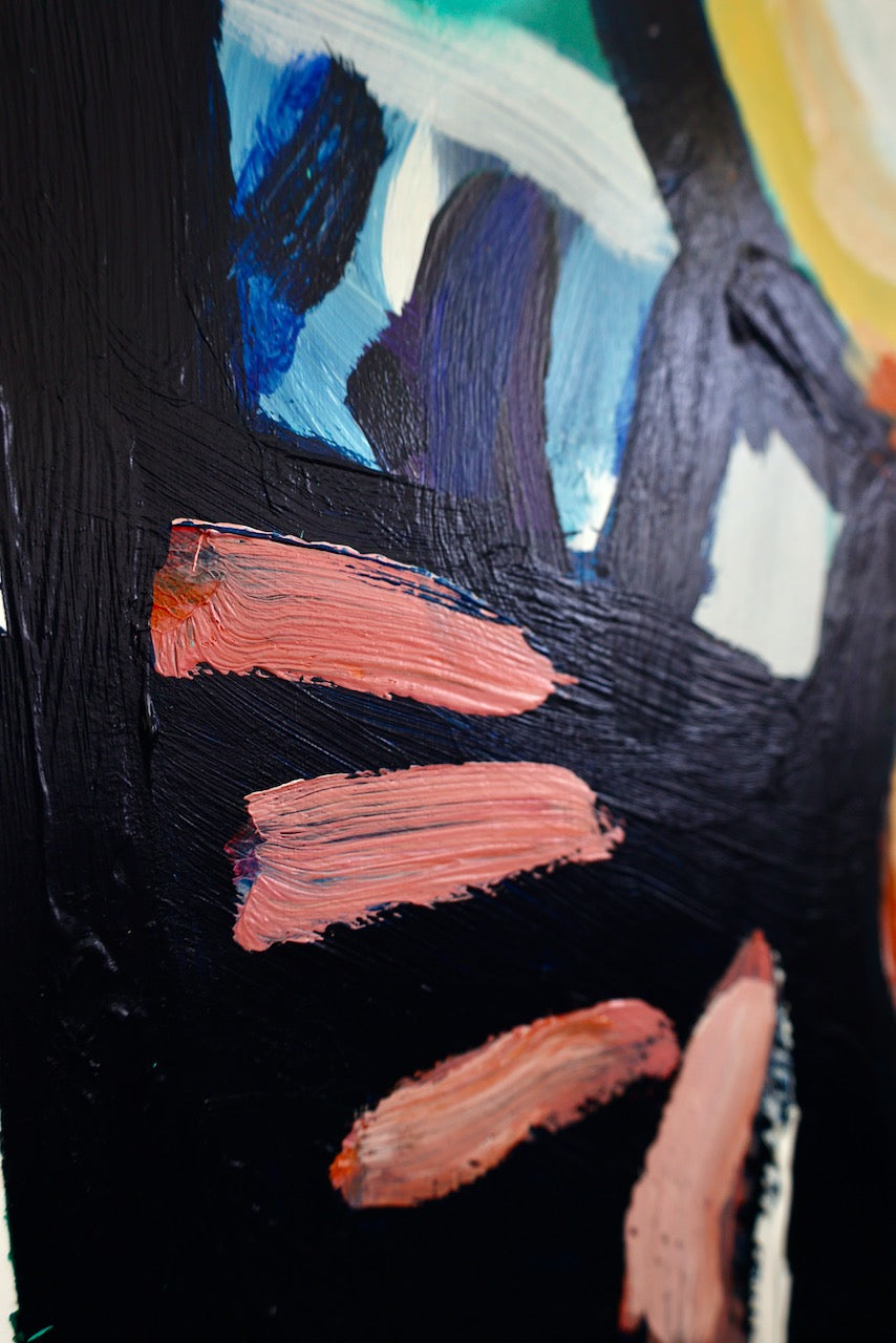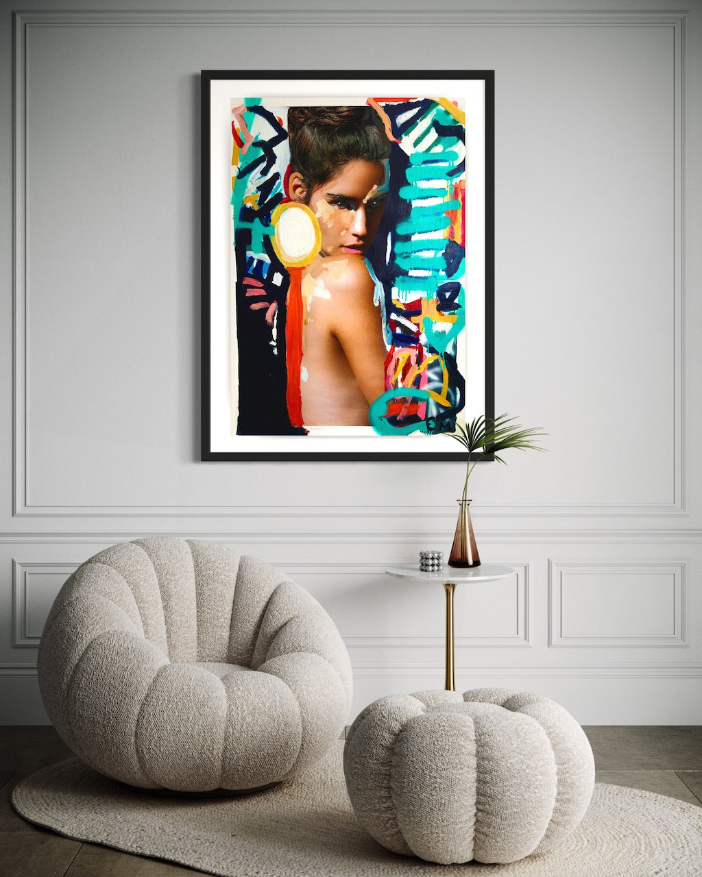 The natural contours of the body lean gently into the vibrant and emotive strokes of acrylic paint, delivering an evocative statement piece that balances both the chaos and the serenity of life.